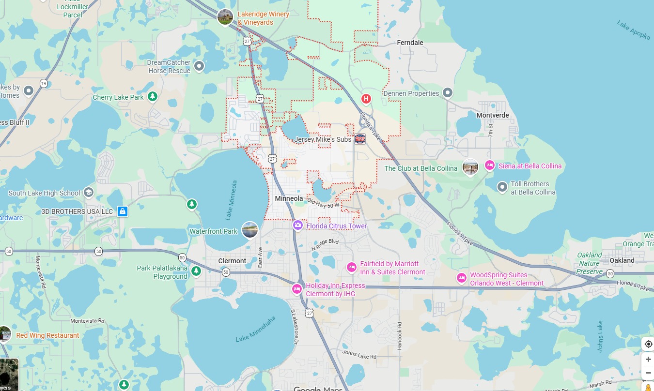 Minneola está ubicada al oeste de Orlando a solo 25 minutos de Disney, justo al lado de Clermont, con acceso directo a: